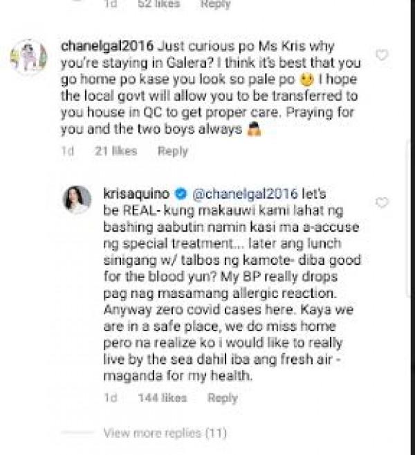 "Just curious po Ms. Kris why you're staying in Galera? I think it's best that you go home kase you look so pale po.