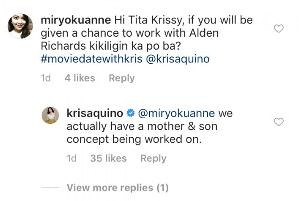 The Queen of All Media, Kris Aquino, hinted on her Instagram account about a possible project with the Pambansang Bae Alden Richards.