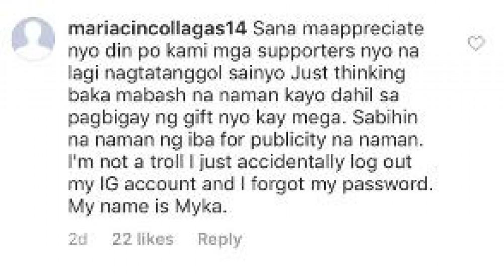 Ito ang matapang na pahayag ng celebrity TV host/actress sa naging komento ng isang netizen patungkol sa regalo na diumano'y ibinigay nito sa Megastar Sharon Cuneta.