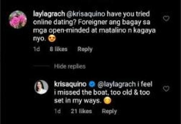 "I feel I missed the boat, too old and too set in my ways." tugon ni Kris.