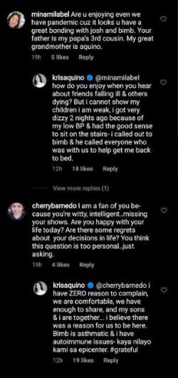 Habang stranded sa Puerto Galera ang pamilya ni Kris Aquino, dahil sa COVID-19 pandemic, naisip ng self-proclaimed "Queen of All Media' na sagutin ang ilang tanong ng mga netizen sa Instagram.