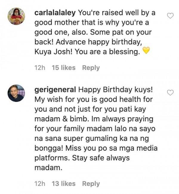 One fan said, “[Josh], you're raised well by a good mother that is why you're a good one. Some pat on your back. Happy birthday, Kuya Josh! You are a blessing.”