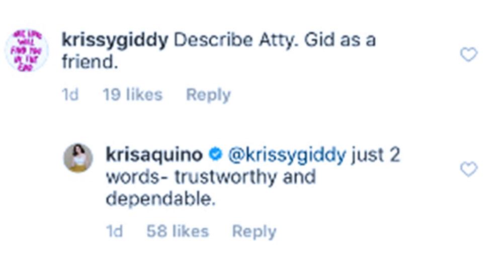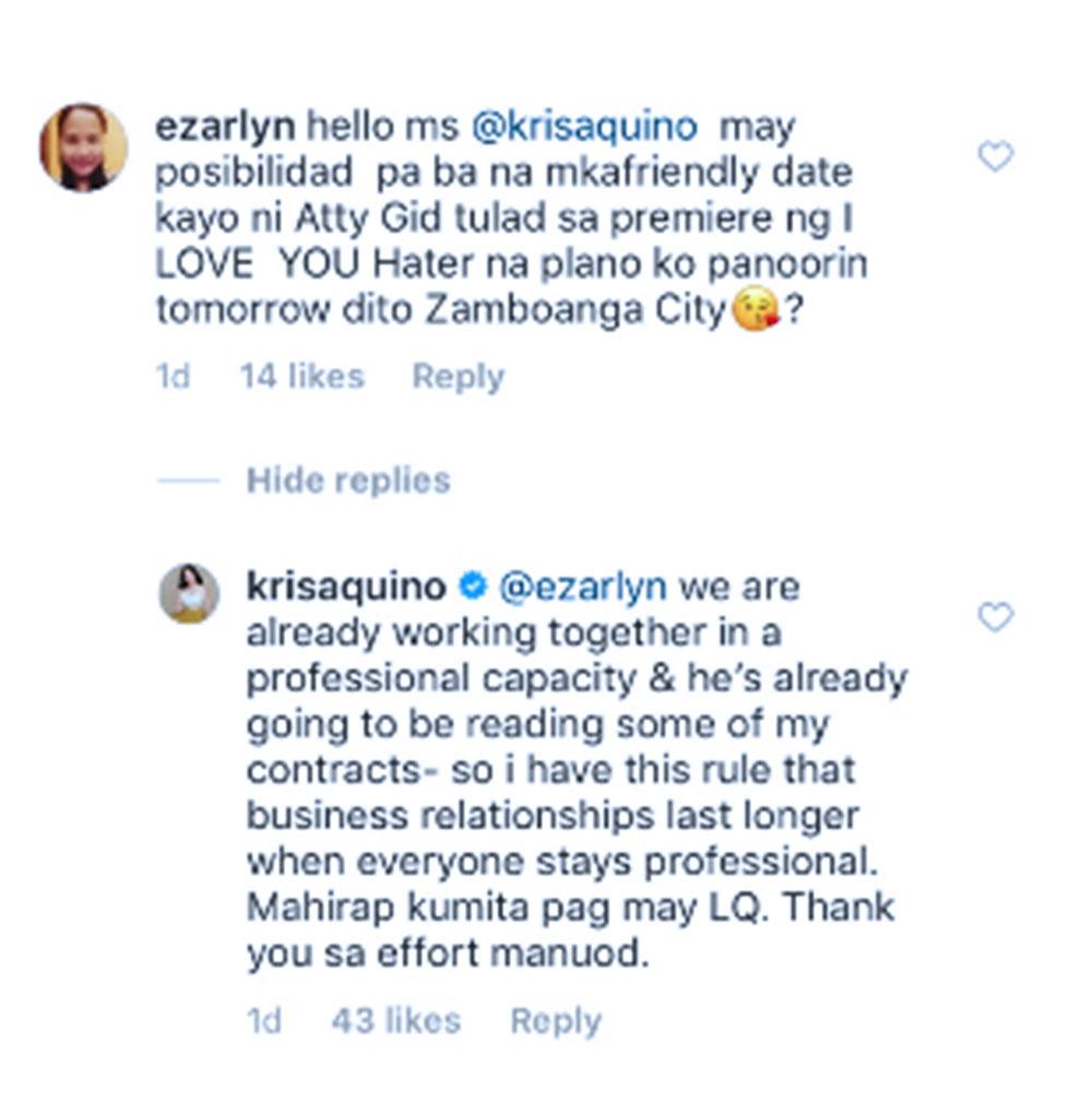 Find out how Kris Aquino reacted to a netizen who asked when is her next friendly date with Atty. Gideon Peña. Read on!