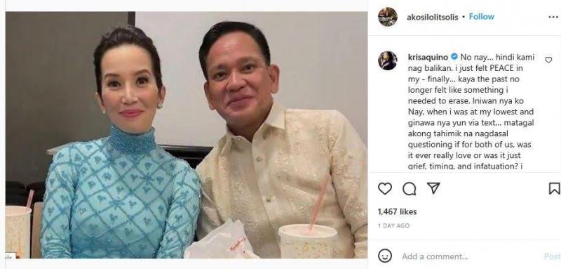 Kris made the revelation via a comment on veteran talent manager Lolit Solis' Instagram post last January 23.