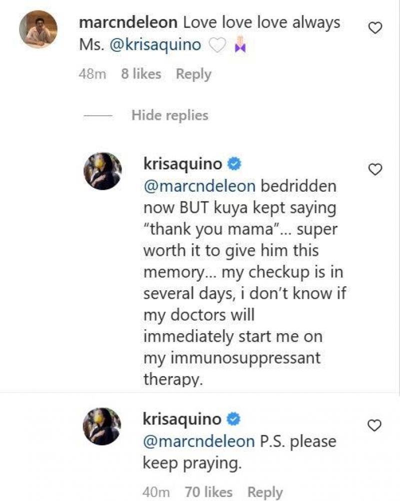 That said, Kris also reminded her fans and followers that the happy trip comes with a trade-off. In the comments to the post, she shared that she is now bedridden after the trip but Josh's gratitude made the whole trip worth it.