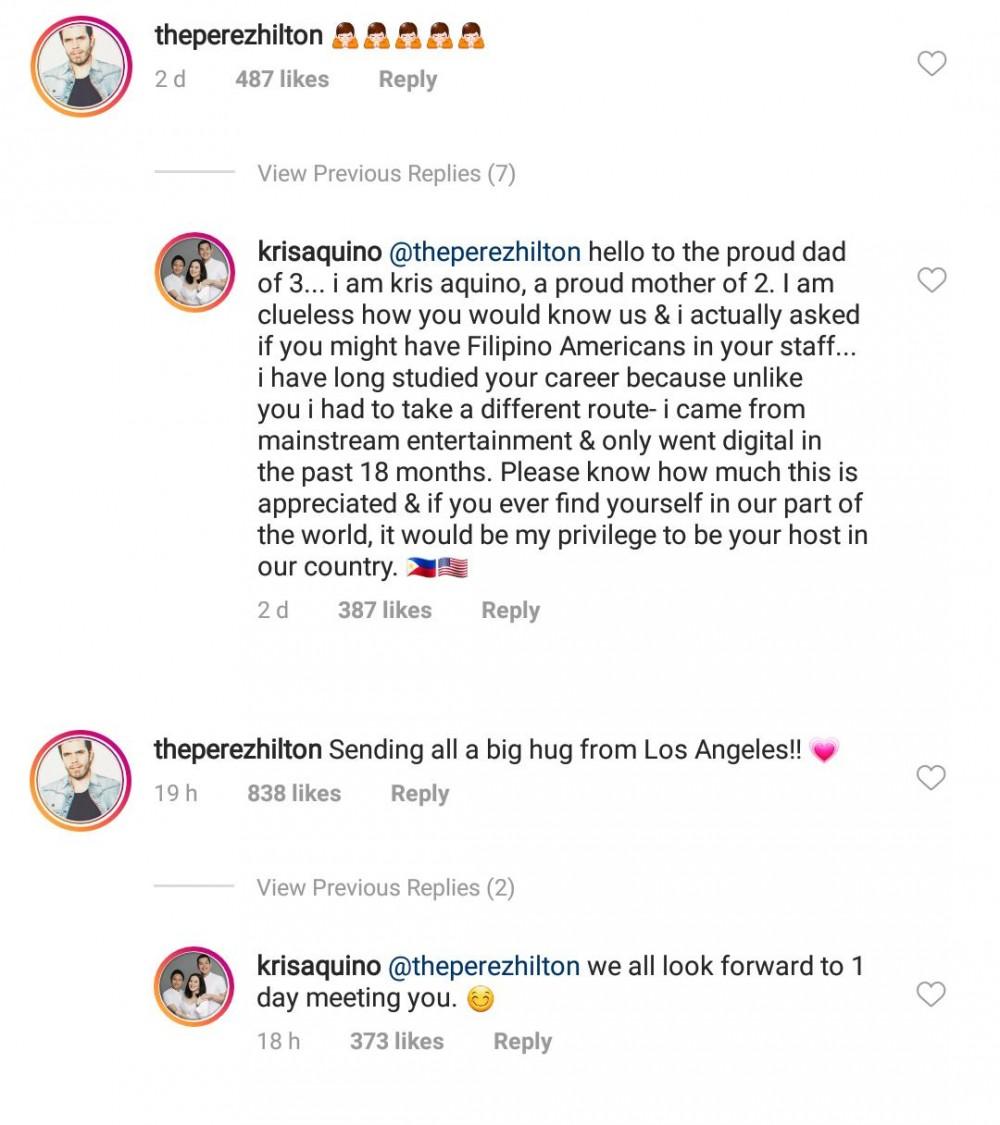 Perez's kindness led Kris to express her eagerness also to meet him in person. In fact, she offered him to be her host if ever he'll visit the country.