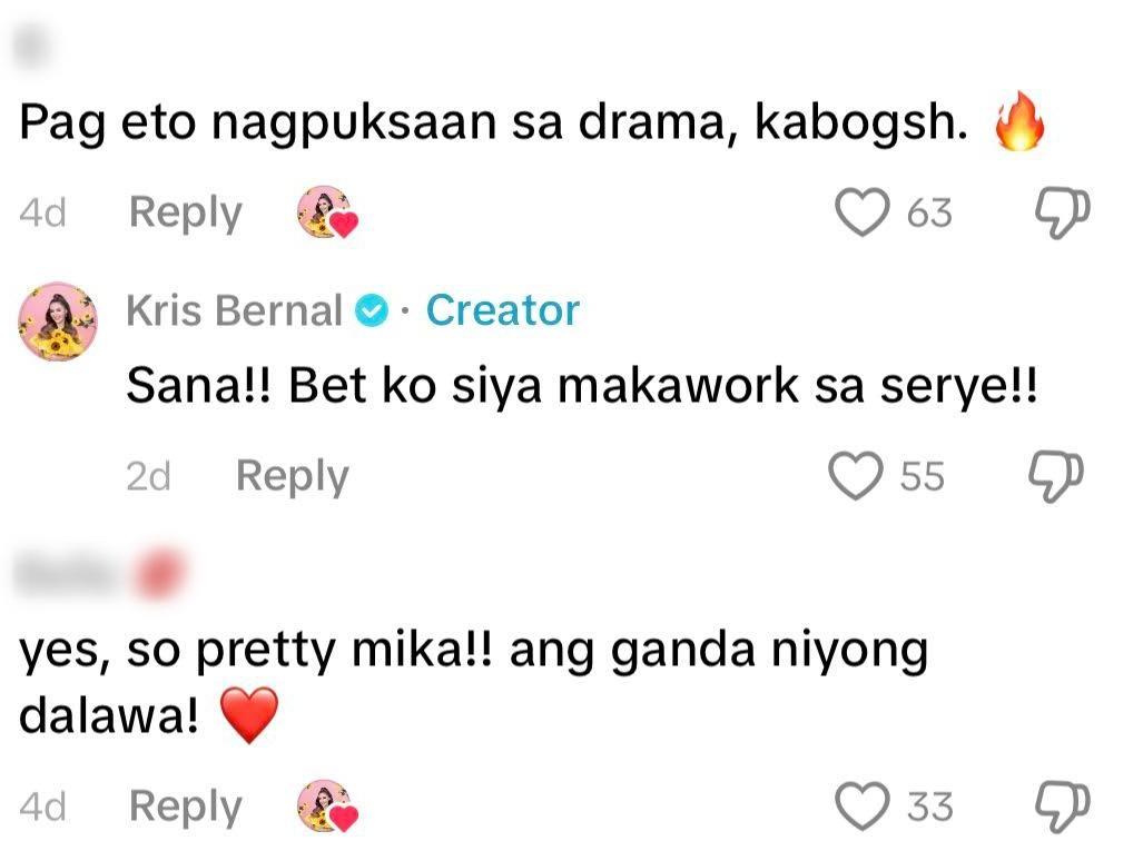 Nabanggit din ni Kris sa comments na gusto niyang makasama si Mika sa isang serye.