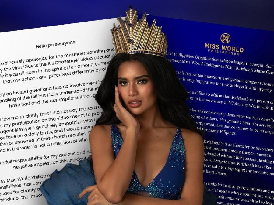 Meanwhile, the Miss World Philippines organization emphasized that the video “does not reflect Krishnah's true character or the values that she upholds.” The organization also said that the viral video was uploaded without Krishnah's consent but Krishnah takes “full responsibility” and has expressed her “deep regret for any misconceptions that may have arisen.”