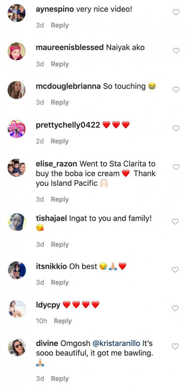 Netizens' comments on Krista Ranillo's touching tribute to employees. / Source: @kristaranillo (IG)