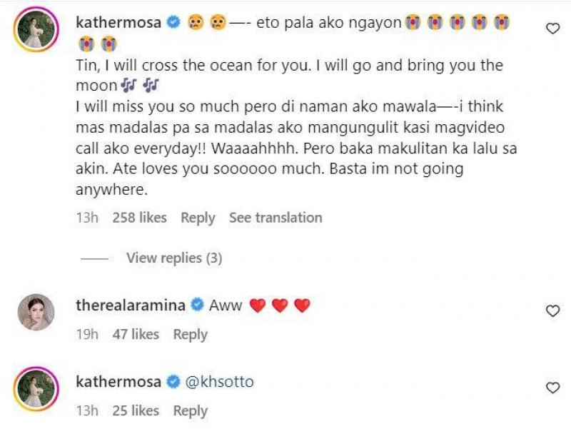 She continued, “I will miss you so much pero di naman ako mawala---i think mas madalas pa sa madalas ako mangungulit kasi magvideo call ako everyday!! Waaaahhhh. Pero baka makulitan ka lalu sa akin. Ate loves.”