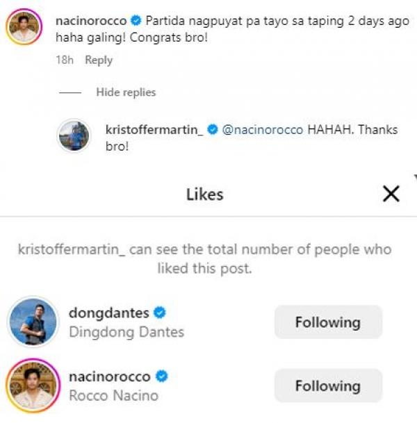 Followers and friends flooded the comment section with congratulatory messages and support. Kapuso star Rocco Nacino, who had been busy with Kristoffer for a taping session the night before the event, extended his amazement and congratulations.