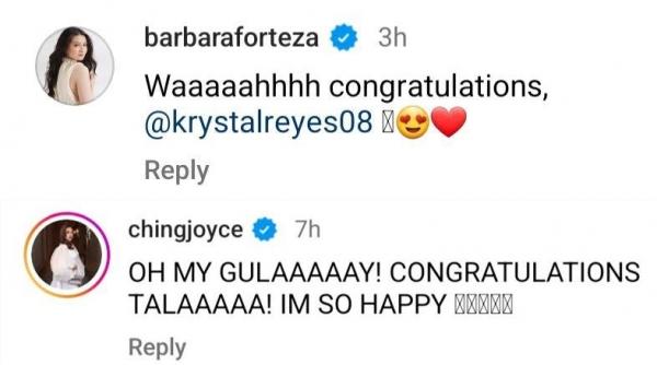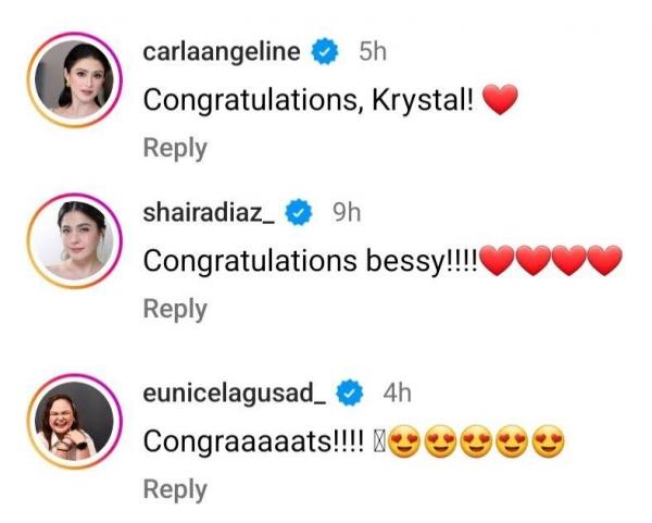 Among those who expressed their love and happiness for Krystal were her Anna Karenina co-stars, Barbie Forteza and Joyce Ching.