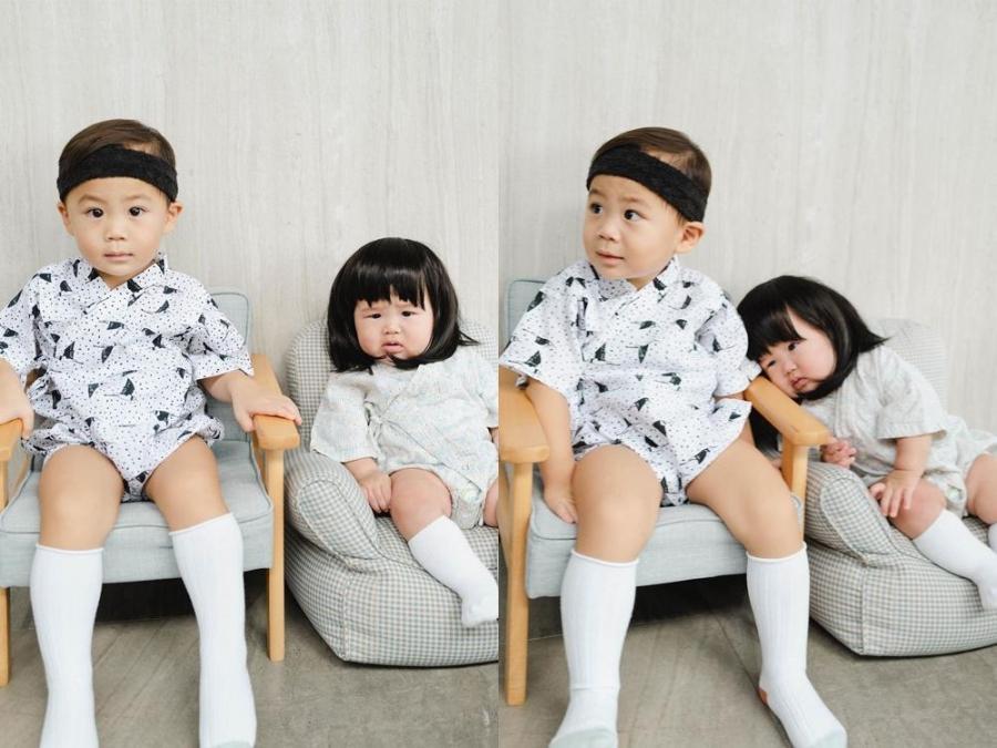 In an Instagram post, the content creator and mom of two shared a series of photos showing Scottie and Sevi wearing little kimonos in celebration of the spooky season.
