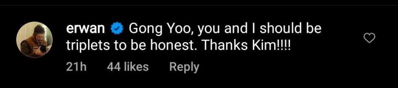 The birthday celebrator then replied to his celebrity godfather, whom he referred to as the Korean artist Gong Yoo, “Gong Yoo, you and I should be triplets, to be honest. Thanks, Kim!!