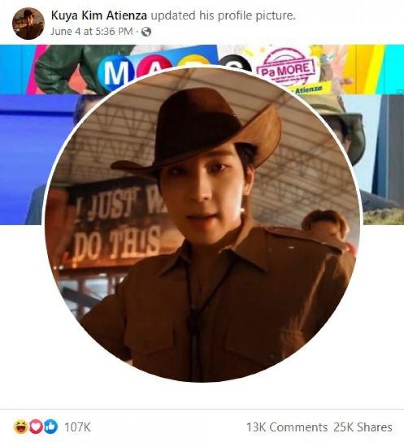 This led Kuya Kim to change his profile picture on Facebook to a photo of Wonwoo who's wearing a cowboy hat like his. We've all known Kuya Kim's iconic hat through the years and once he saw it on his lookalike, he immediately grabbed the chance to make a meme out of it.