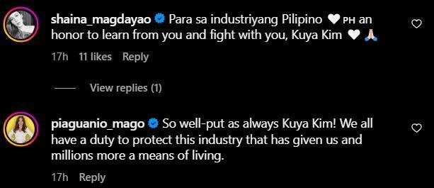“So well-put as always Kuya Kim! We all have a duty to protect this industry that has given us and millions more a means of living,” sabi ni Pia.