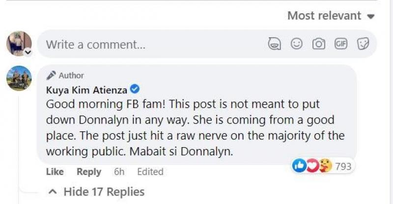 “The post just hit a raw nerve on the majority of the working public. Mabait si Donnalyn.”