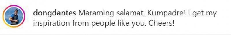The Kapuso Primetime King and Amazing Earth host responded to Kuya Kim's message and said, "Maraming salamat, Kumpadre! I get my inspiration from people like you. Cheers!"