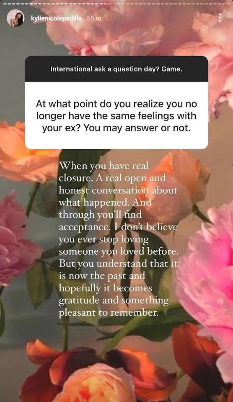 It was in an Instagram story where Kylie answered a netizen who asked the question, "At what point do [sic] you realize you no longer have the same feelings with your ex?"