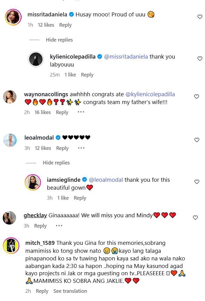 Kapuso singer and actress Rita Daniela reacted to the farewell post of Kylie and congratulated her for a job well done as Gina.