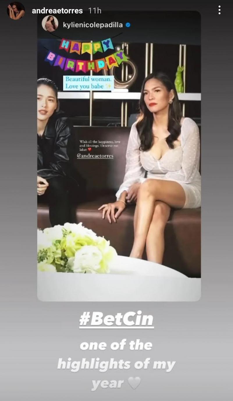 One of those who greeted Andrea was her co-star Kylie Padilla in the GL (girls' love) series BetCin.