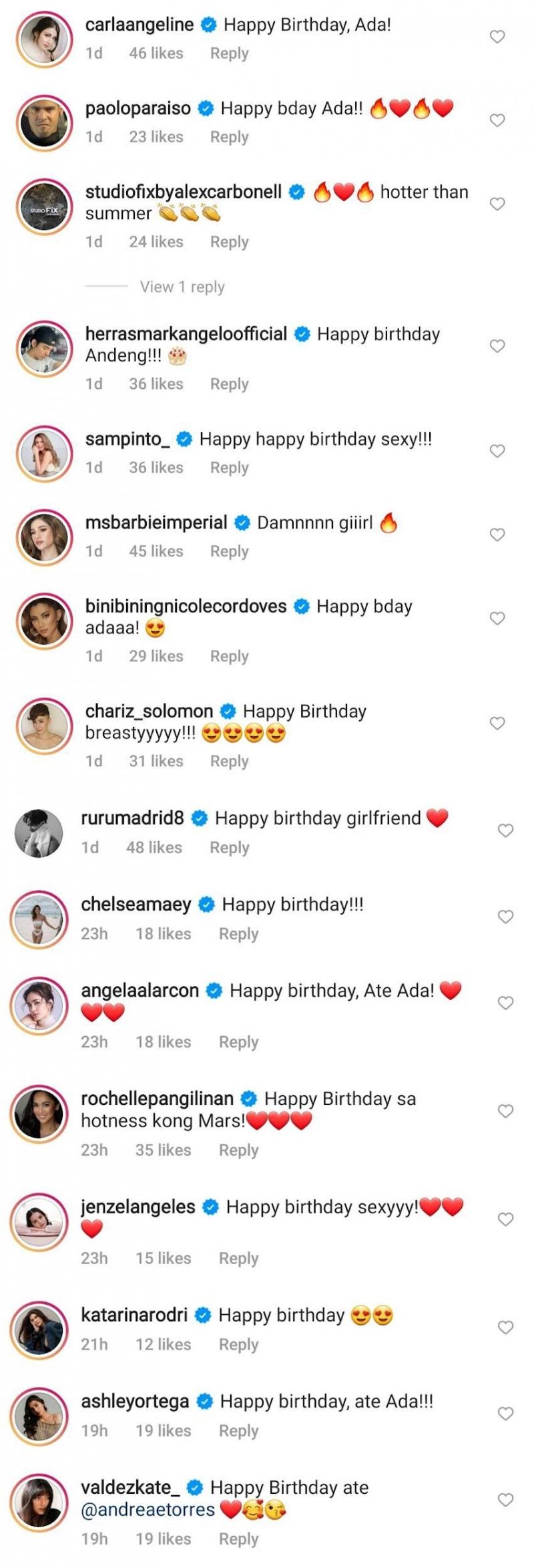 Other celebrities including Carla Abellana, Paolo Paraiso, Mark Herras, Barbie Imperial, Chariz Solomon, Ruru Madrid, Angela Alarcon, Rochelle Pangilinan, Katarina Rodriguez, Ashley Ortega, and Kate Valdez, also sent their birthday greetings for Andrea.