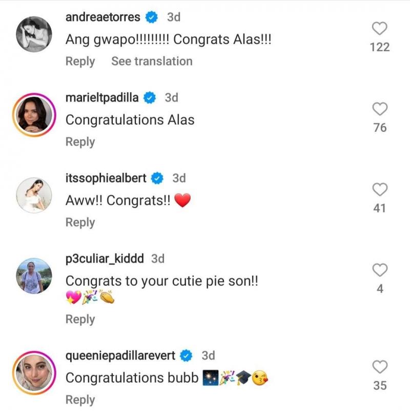 Ilan sa celebrities na bumati sa bagong achievement na ito ni Alas ay sina Andrea Torres, Mariel Padilla, Sophie Albert, at ang kapatid ni Kylie na si Queenie Padilla.