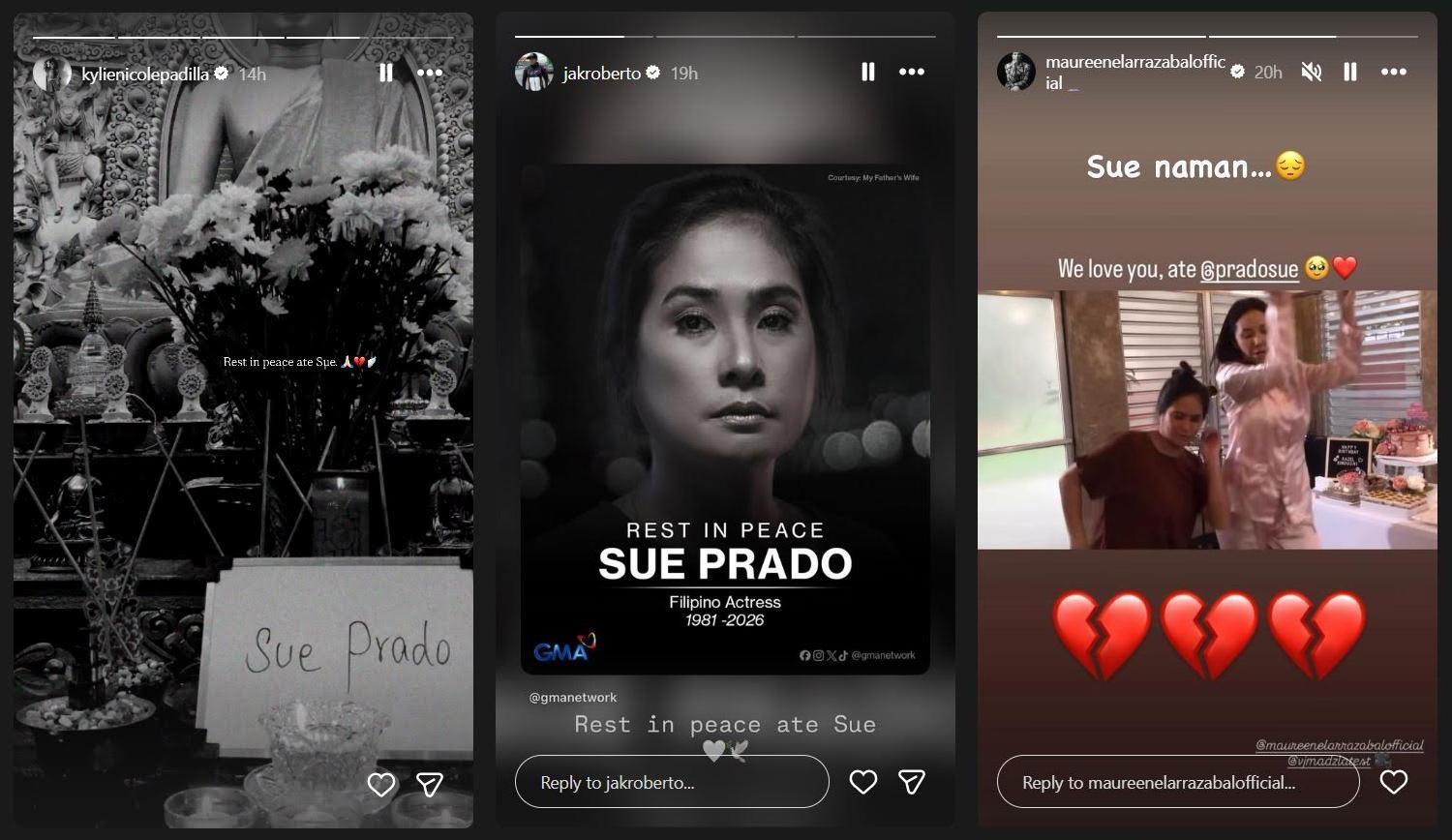 Kylie took to Instagram Story to remember her dearest Ate Sue, while Jak reposted a memorial post of the late actress on Instagram.