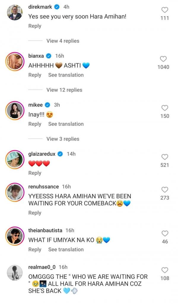 Pagbati ni Direk Mark Reyes sa post na ito ni Kylie, "Yes see you very soon Hara Amihan!"