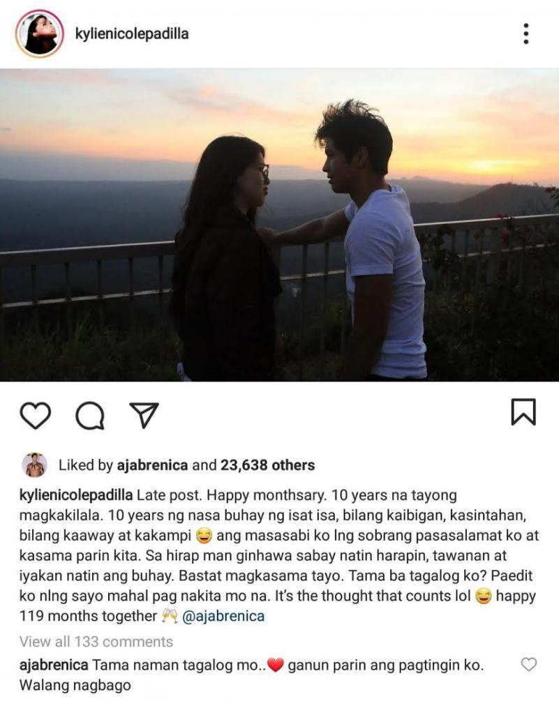 “Happy monthsary! 10 years na tayong magkakilala. 10 years ng nasa buhay ng isa't isa bilang kaibigan, kasintahan, bilang kaaway at kakampi,” she wrote.