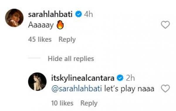 Sarah Lahbati left a comment saying, "Aaaaay" with a fire emoji and Kyline responded with an invite to a match.