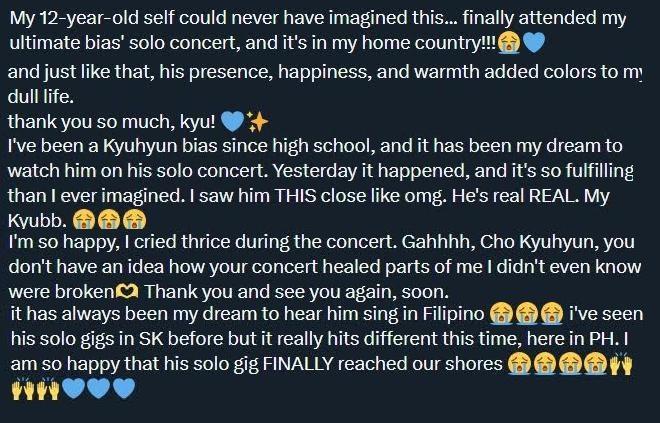 After his Manila stop, ELFs took to social media to express how they continue to feel the warmth and happiness Kyuhyun left behind.