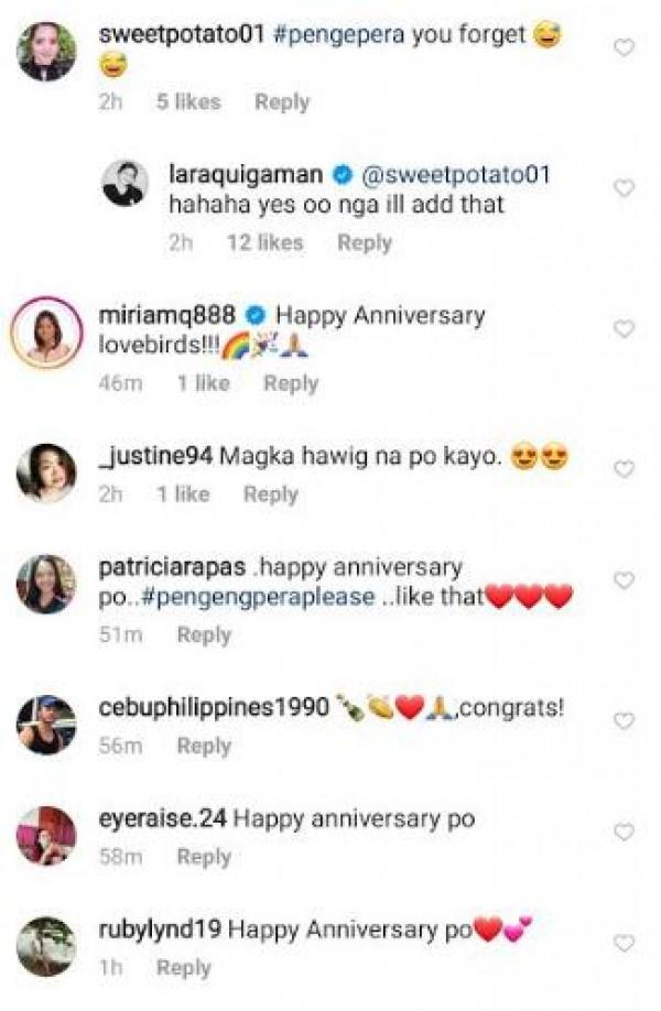 One of the first people to greet them on their anniversary was former Unang Hirit host Miriam Quiambao.