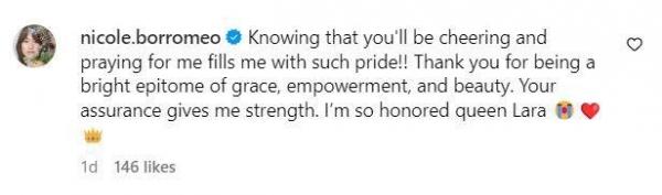 Nicole also responded to Lara's kind words in the comment section. She said, “Knowing that you'll be cheering and praying for me fills me with such pride!!