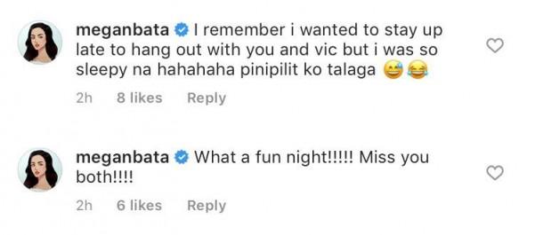 “I remember I wanted to stay up late to hang out with you and Vic but i was so sleepy na hahahaha pinipilit ko talaga,” Megan wrote in the comment section.