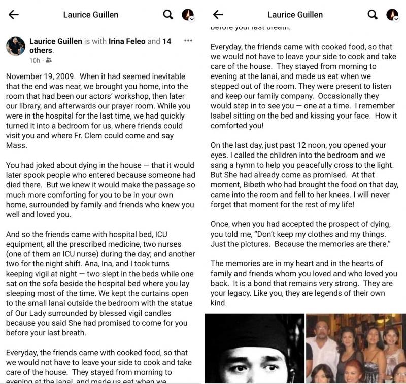 Direk Laurice Guillen reveals her final moments before her actor husband Johnny Delgado died in 2009.