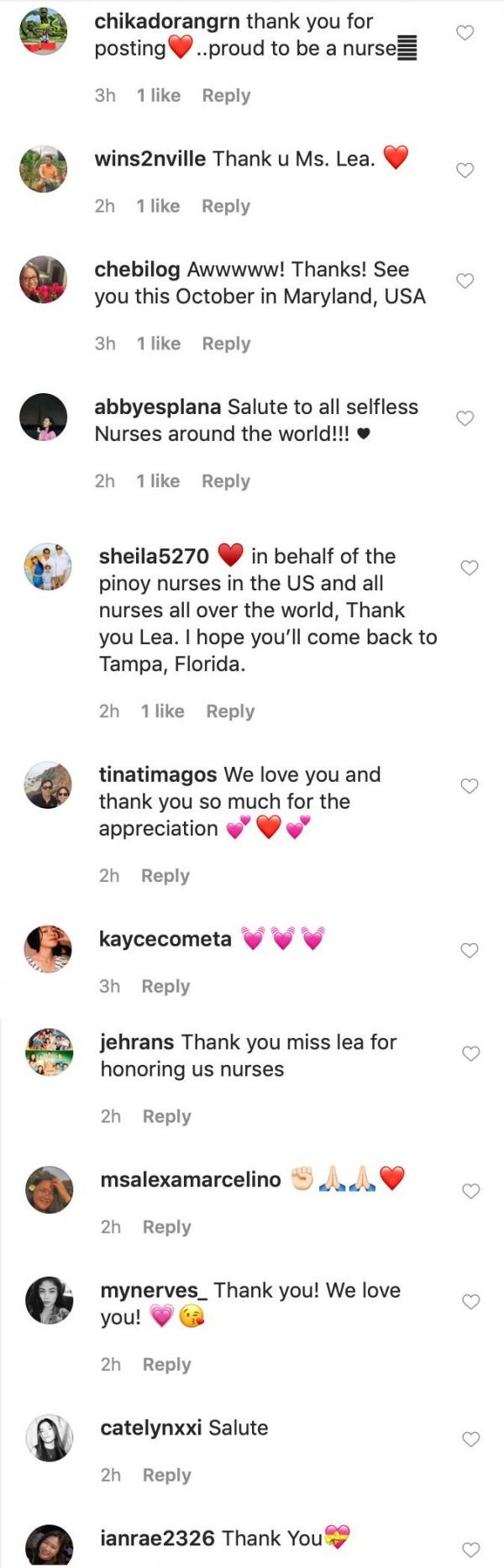 In her Instagram post, the veteran singer gave praise to nurses for their heroic sacrifices in battling the 2019 coronavirus disease (COVID-19).