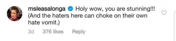 At saad ni Lea sa mga basher, “The haters here can choke on their own hate vomit.”