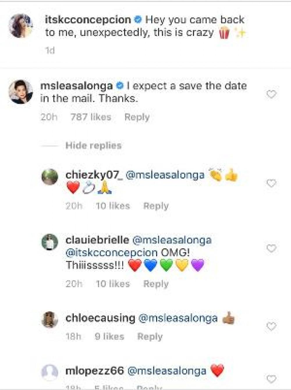 Hindi tuloy naiwasan ng Broadway star na si Lea Salonga na tuksuhin ang dalawa tungkol sa pagpapakasal.
