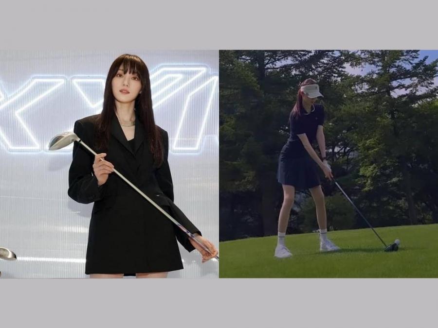 In the video, the Korean actress can be seen hitting the golf ball perfectly while wearing a chic polo shirt and skirt.
