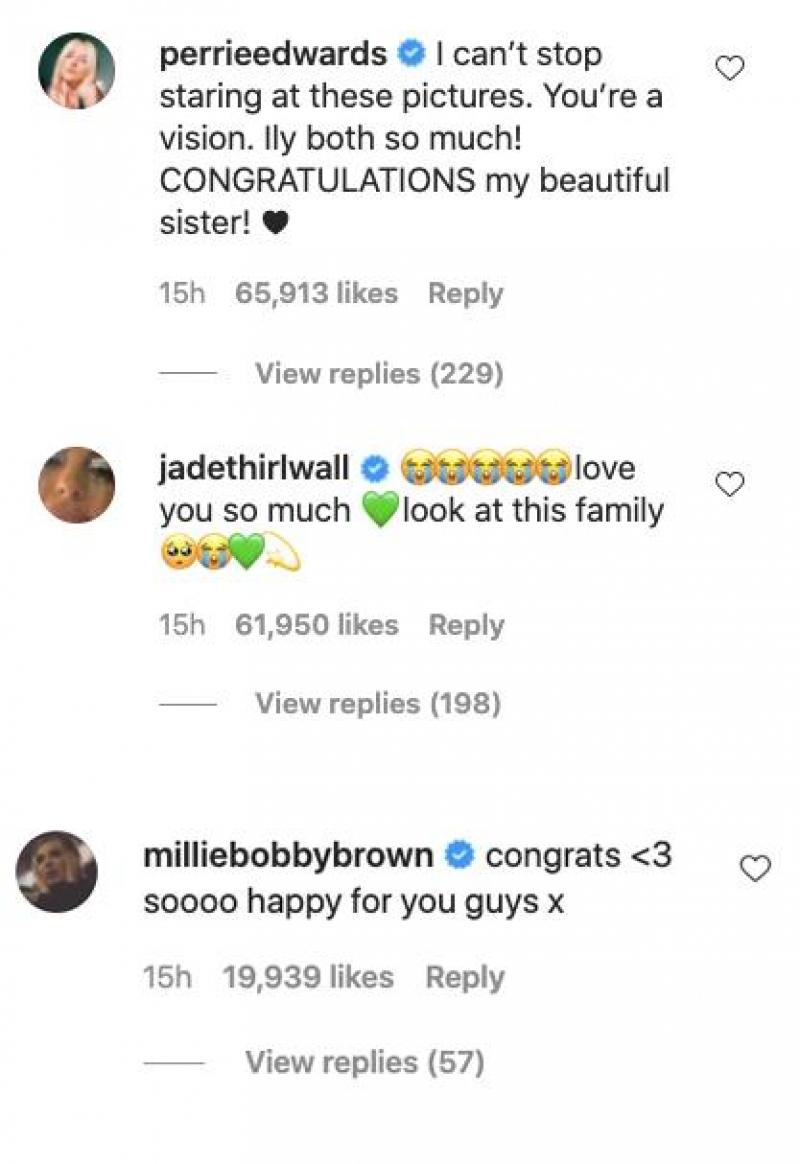 Perrie said, “I can't stop staring at these pictures. You're a vision. Ily both so much! CONGRATULATIONS my beautiful sister! ♥️”