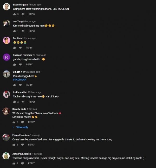 Ayon sa mga comments, tinamaan daw sila ng "LSS" o "Last Song Syndrome" matapos marinig ang tinig ni Lexi sa episode ng Tadhana.