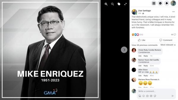 Bukod sa GMA journalists, nagdadalamhati rin sa pagpanaw ni Mike ang ilang celebrities, government officials, mga kabilang sa news industry, at pati na rin ang milyon-milyong Pinoy viewers.