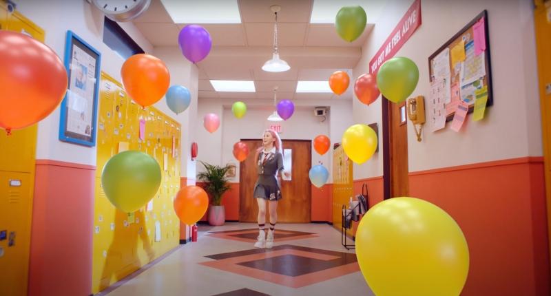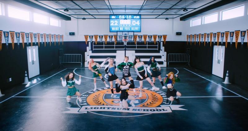 The music video is set in what seems to be a high school where LIGHTSUM members are seen breakdancing in preppy school girl ensembles along the corridor, gym, and inside the classrooms. The bright set gives off a lively and happy vibe that adds to the song's charm.
