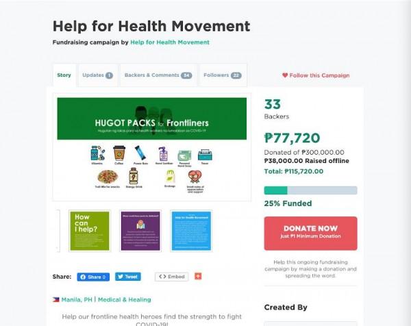 Help for Health Movement is asking for donations to raise funds and provide 300 “Hugot Packs” for 300 healthcare workers.