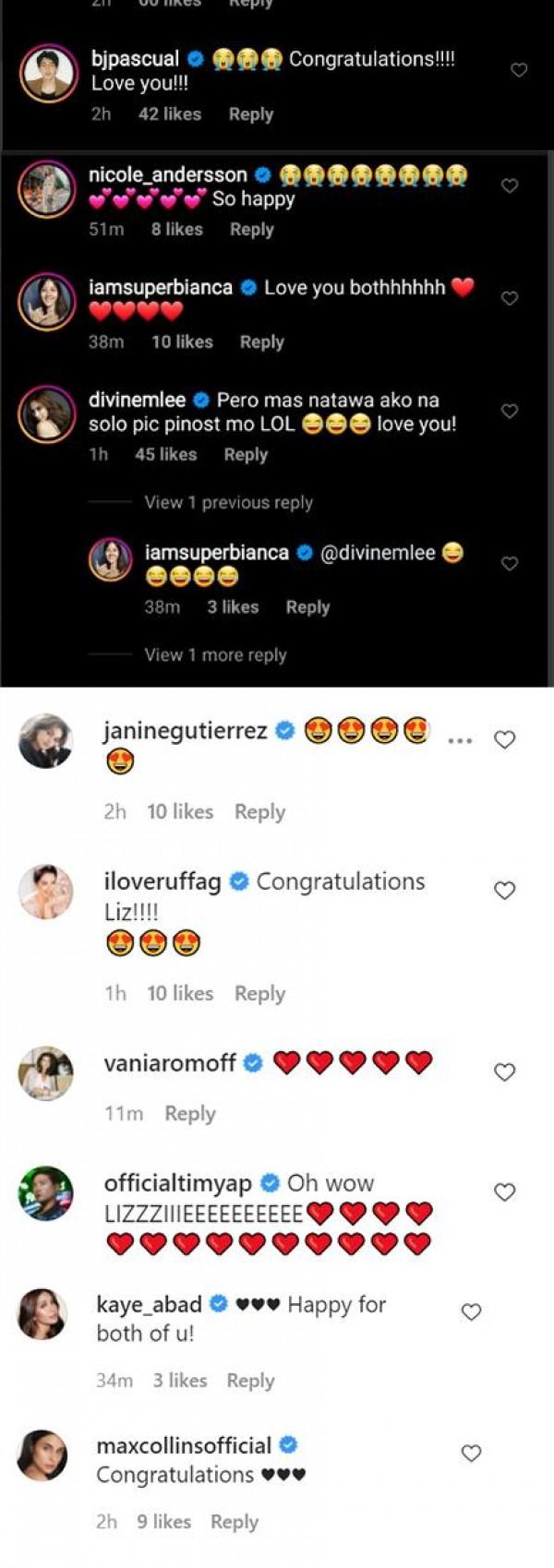 Other celebrities also sent their well-wishes to the engaged couple including Janine Gutierrez, Max Collins, and Tim Yap.