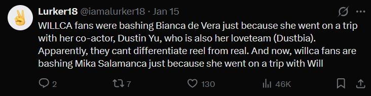 Netizens clarified that it was the loveteam of Will Ashley and Binaca de Vera, also known as WilCa, when it was rumored that they were dating other people.