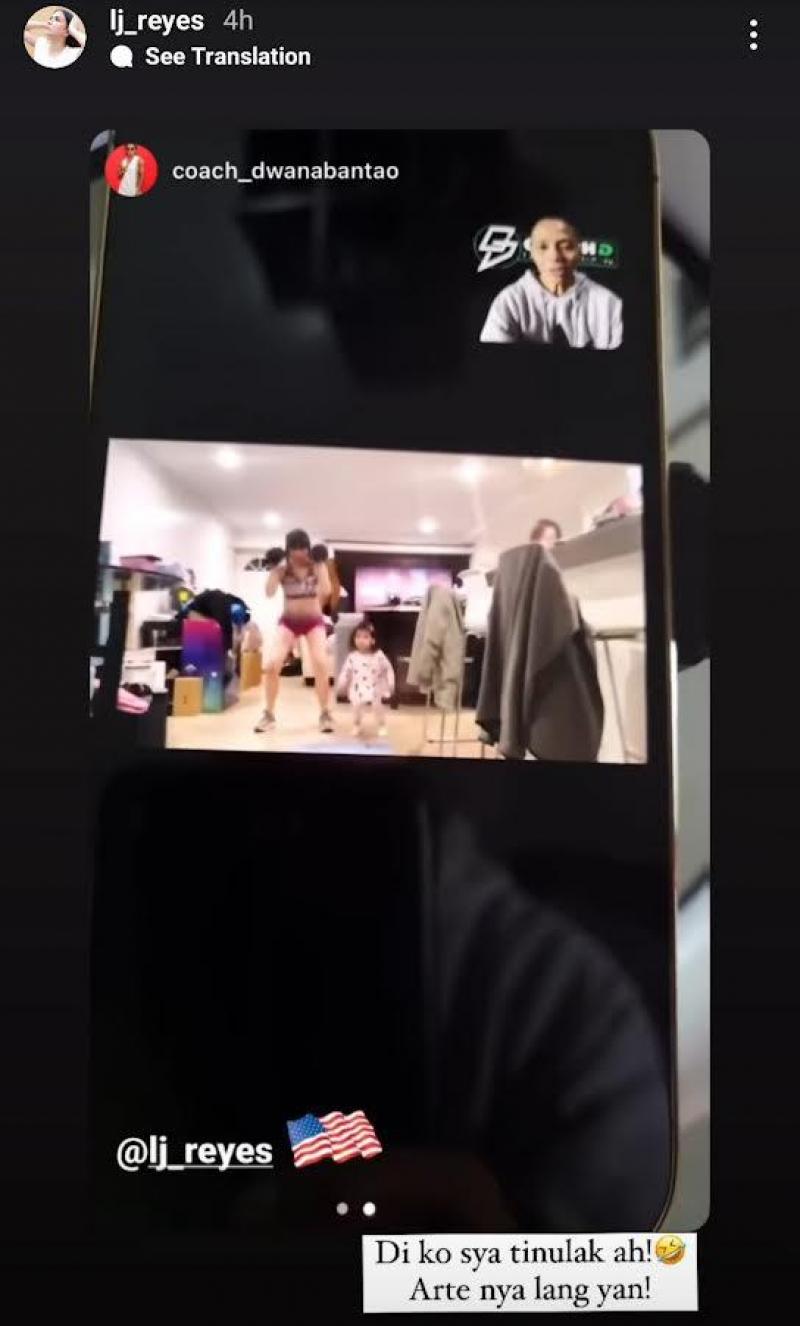 Sa Instagram story, ibinahagi ni LJ kung paanong sinasabayan at ginagabayan siya ni Summer sa kanyang online home exercises.