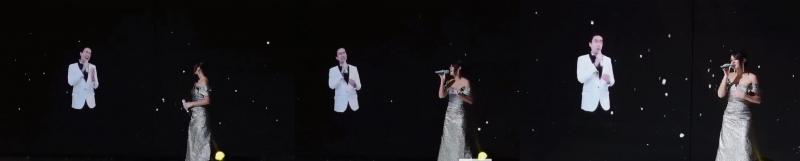 Romantic balladeer Christian Bautista sang a duet on a chroma key background with popular Indonesian singer, Raisa, at a wedding reception in Jakarta.