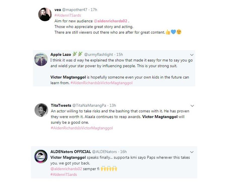 Nagpakita rin ng suporta ang netizens at sinabing naniniwala sila sa kakayahan ni Alden bilang isang magaling na aktor.